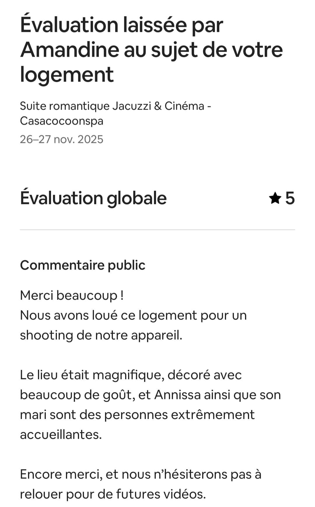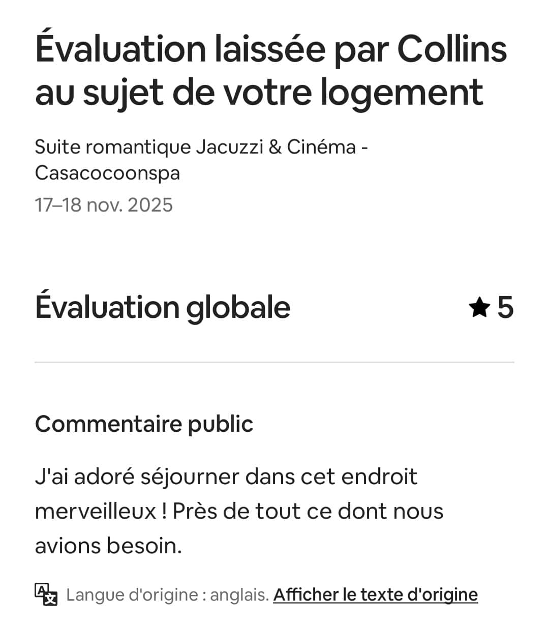 Profitez d’un jacuzzi chauffé (suite privative), d’une décoration haut de gamme, et d’une ambiance chaleureuse pour créer vos souvenirs, en couple, en famille ou entre amis.